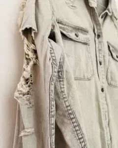 Camisa de mezclilla. Se puede usar cerrada o con un playerita abajo y abierta. Queda bien con todo!Los detalles de desgaste son parte del diseño.