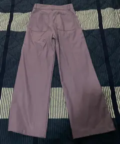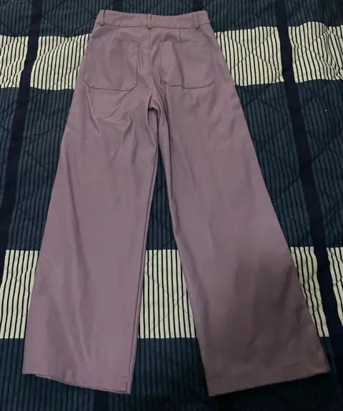 Pantalón efecto piel, bolsas atrás, tipo pata de elefante, queda arriba de los tobillos y también a la cintura Súper bonito