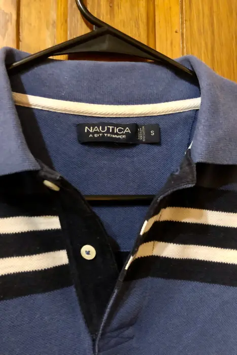 Camisa tipo polo para hombre, Náutica talla small/chica. Azul con rayas. Algodón 100%.