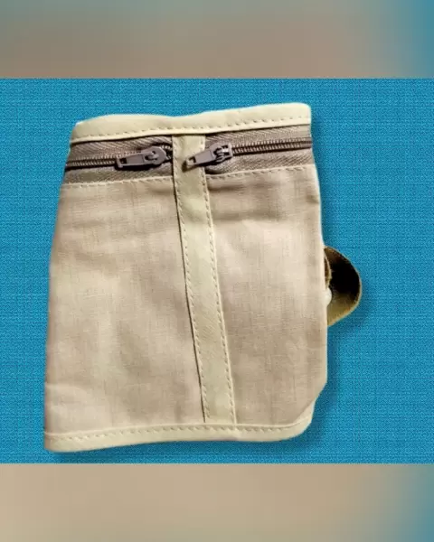 Pequeña bolsa de viaje y contra robos. Tiene 2 cierres en la parte frontal. Es de tela, mide 36 x 13 cm. Cinturón de resorte.Ideal oara guardar el dinero de manera discreta. Y puede ir perfecto debajo de la camiseta y es muy discreta.