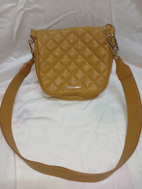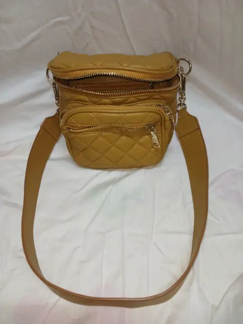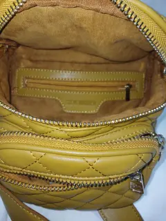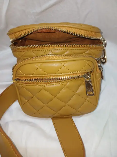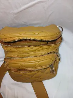 Bolsa tipo cangurera steve madden. Bolsa tipo cangurera para colgar cruzado color mostaza, tiene tres compartimentos con cierre, se encuentra en perfecto estado