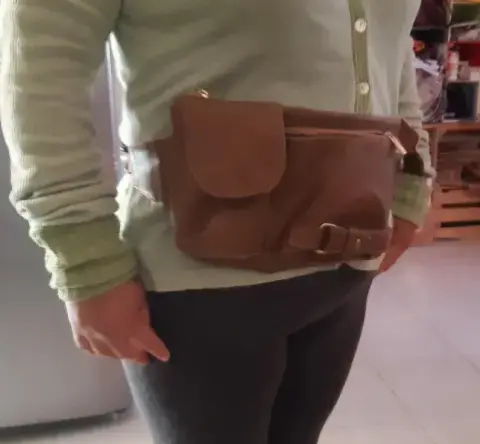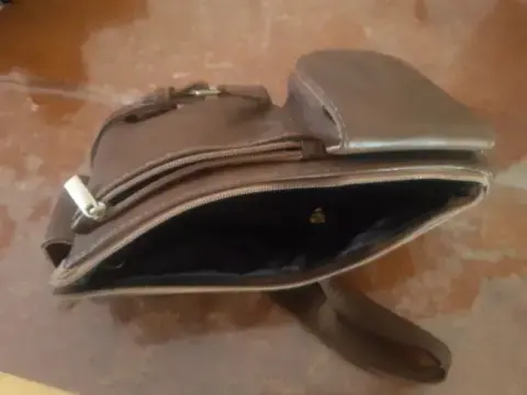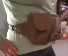 Cangurera color café SeminuevaCon 3 compartimentosDos cierres y un brocheAjustableDe pielResistenteMuy amplia