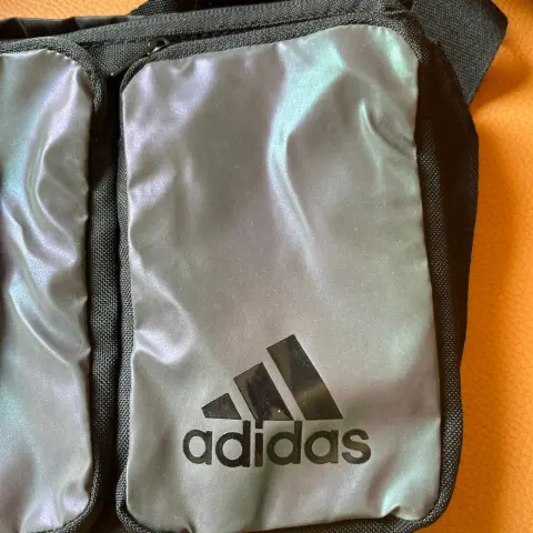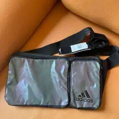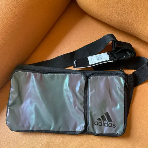 Cangurera Adidas. Cangurera negra con bolsillos externos. En color negro y bolsillos tornasol. Con asa para la cintura. Nueva con etiqueta. Sin uso. Mide 32 cm x 17 cm.