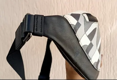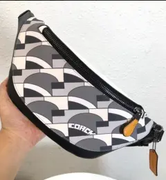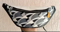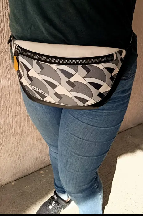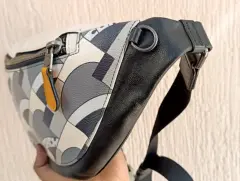Hermosa Cangurera Riñonera COACH Diseño de figuras geométricas en tres colores y piel color negro doble cierre y broche metálico tamaño grande súper práctica e ideal para el día a día , es unisex, presenta mínimos detalles de uso visibles en fotos no tiene tag