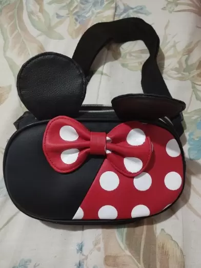 Bonita cangurera es para dama , con detalles semejantes a Minnie . Tiene compartimentos para que puedas guardar todo lo necesario . Linda y original