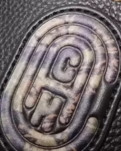 Cangurera pielCorrugada y el logo al frente que está “degradado” 20cm x 26cm x 6 cm