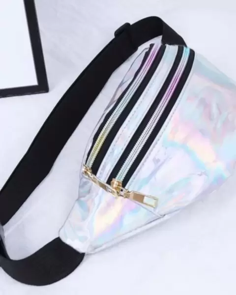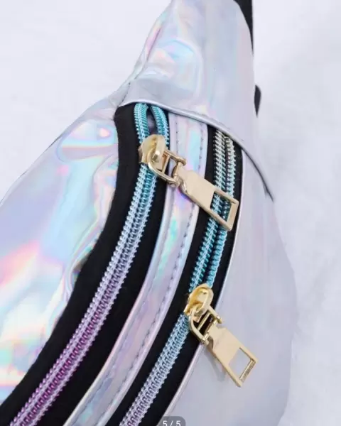 Cangurera plata tornasol. Cómoda y casual riñonera ,con compartimiento muy práctica, para llevar lo esencial y combina con cualquier outfit