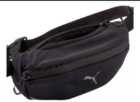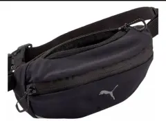 Cangurera running Puma color negro y trae algunas tiras reflejantes, completamente nueva, súper ligera y práctica.