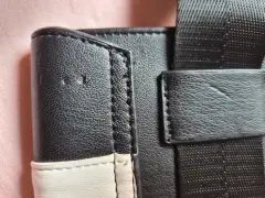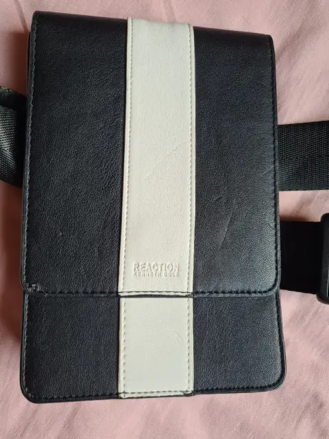 Porta celular tipo cangurera color blanco y negro, marca Kenneth Cole. Sin uso, ha estado guardada, solo tiene un detalle en la última foto; en la parte de atrás por arriba del lado derecho tiene un ligero rasguño.