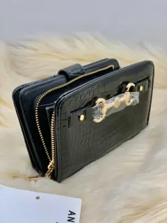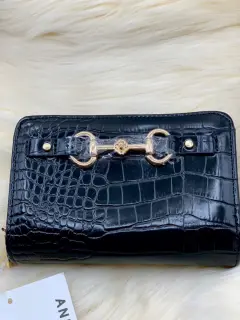 HERMOSA CARTERA CHICA ANNE KLEIN EN COLOR NEGRO CON DORADO DE CIERRE Y BROCHE , TARJETERO! ES NUEVA SIN DETALLES CON ETIQUETA 🏷️