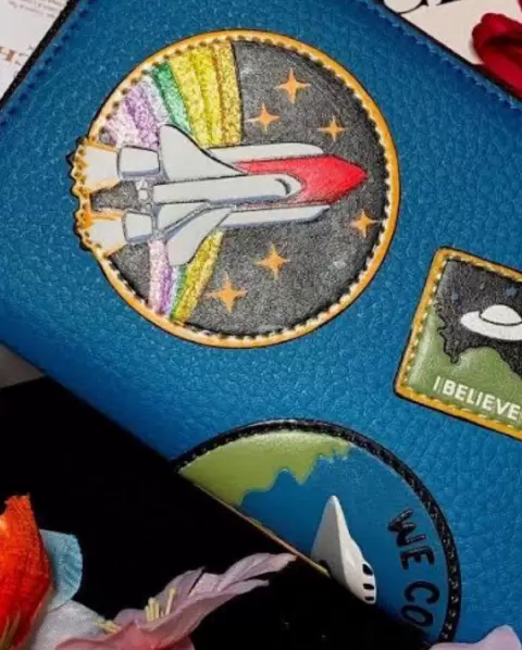 Cartera Coach con Stickers espáciales, nueva, caja, cubrepolvo, certificado