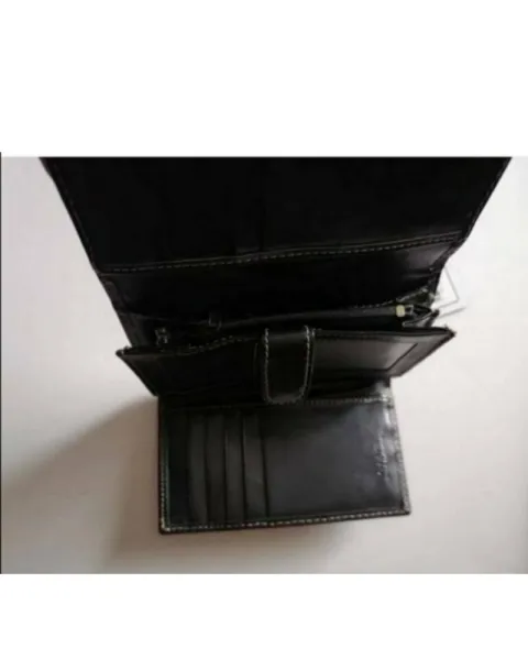 Bonita cartera en negro sintetico, muy completa, completamente nueva con etiquetaMedidas 10cm largo, ancho 14cm.POR FAVOR SI NO ES TU COMPRA SEGURA NO RETENGAS EL ARTICULO ANTES PUEDES PREGUNTAR SIN COMPROMISO SOBRE TUS DUDAS DE ALGÚN DETALLE