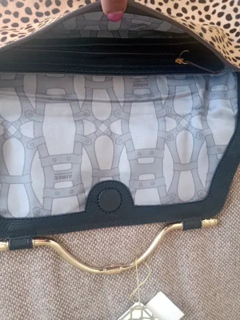 Preciosa cartera de mano AIMEE KESTENBERH de cuero...medidas 30cm de largo por 19cm se alto nueva con etiqueta