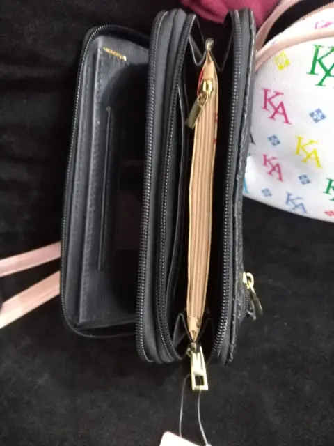 Cartera de mujer marca stonemountainusa nueva de piel color negra con grabado de flores varios compartimentos