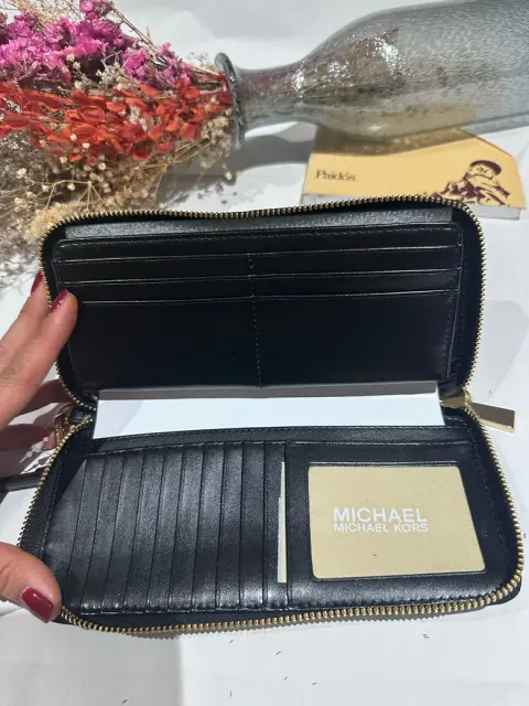 Cartera en piel con holograma MK. Hermosa cartera con holograma de la marca y en piel por dentro. Incluye 18 apartados por dentro 2 para billetes y uno para monedas. Es muy práctica para uso diario. Medidas; Ancho 24 cmAlto 16 cmProfundo 5.5 cm