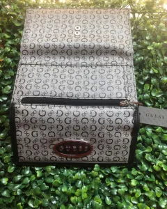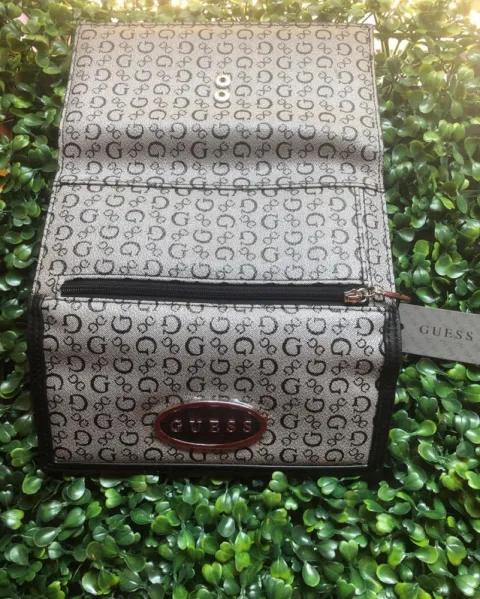Bonita cartera Guess, nueva con etiqueta, color gris con negro, lista para estrenar