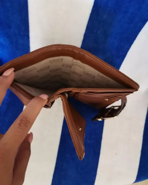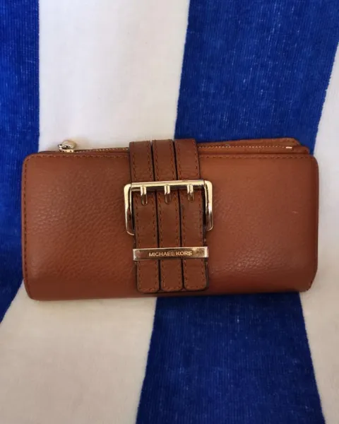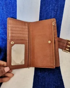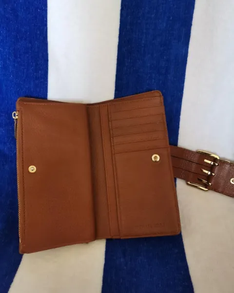 Hermosa Certera Michael Kors toda en piel, super cuidada detalles de raspado en placa la piel está bien cuidada sin detalles, esta hermosisima,mide 18.5 cm x 9.5 cm