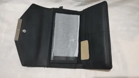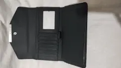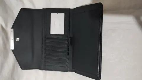 Elegante cartelera negra original Nine West nueva sin detalles, puedes guardar hasta 16 tarjetas, cómoda y con doble boton