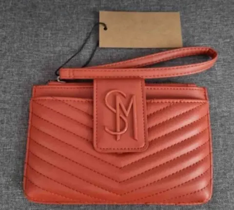 Cartera Steve Madden. Hermosa y súper útil! 2 bolsas, 1 con cierre y otra con botón de contacto con el logo de la marca, tiene strap de muñeca removible.✨Disponible en negro y ocre
