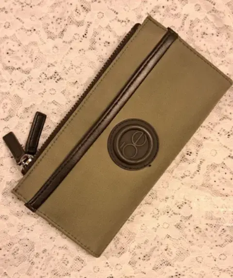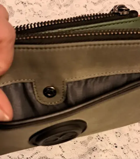 Divina cartera con amplio monedero y espacio tarjeteroCompartimento ocultoDoble cierre Verde militar/Negro Diseño interior en tela vintage