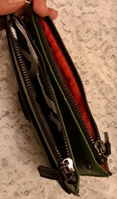 Cartera Tarjetero. Divina cartera con amplio monedero y espacio tarjeteroCompartimento ocultoDoble cierre Verde militar/Negro Diseño interior en tela vintage