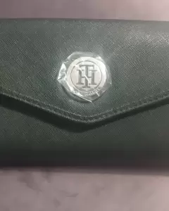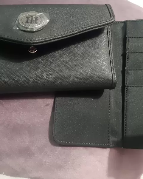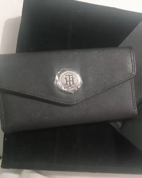 Cartera Tommy Hilfiger negra granulada. Cartera Tommy Hilfiger con diversos espacios para tarjetas y tarjetero extraíble negra, granulada, nueva, sin etiqueta.