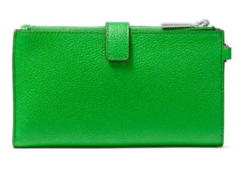**TOTALMENTE NUEVA DE TEMPORADA**Cartera Michael Kors Jet, elaborada en cuero piel verde con textura granulada, compartimento principal de broche imantado. Interior con ranuras para tarjetas e identificaciones, billetera y dos bolsillos con cierre.• Tipo de Cierre: Broche imantado y cremallera.• Tamaño de asas: 15.2 cm.100% piel