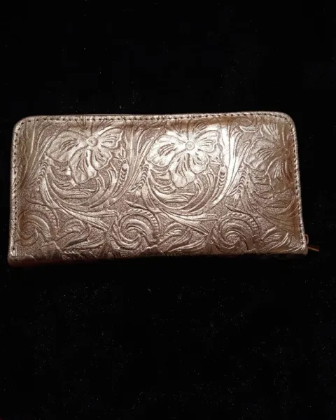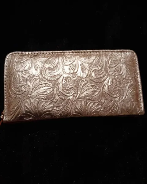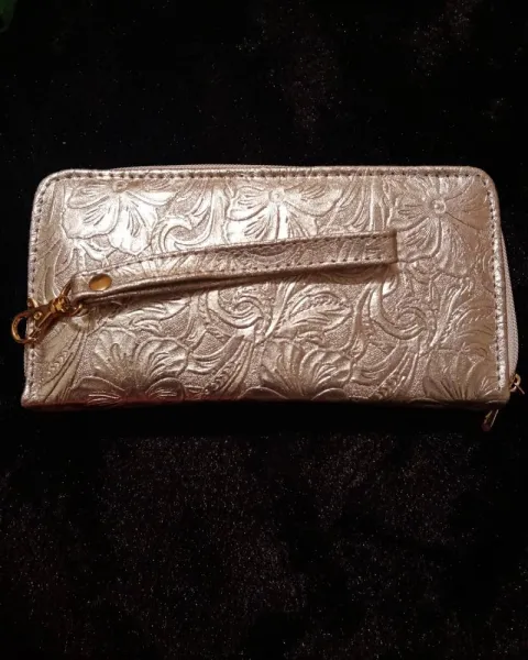 Hermosa cartera 100% piel de vacuno, color plata, nueva ultimo precio.