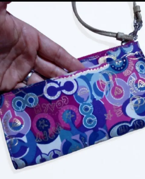 💜Muñequera monogram COACH. 💜💙Linda muñequera monograma de la marca Coach original Con compartimientos para tarjetas Dos bolsas exteriores una con ziper