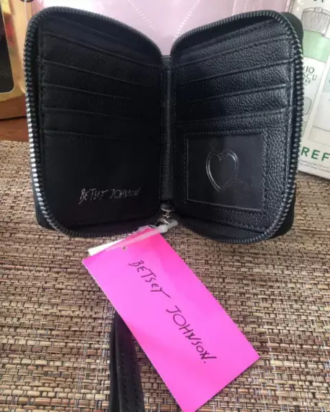 Tarjetero Betsey Johnson. Tarjetero Betsey Johnson, espacio para hasta 6 tarjetas y monedas, con asa para colgarse en la mano y para colocarse en la mochila o bolso. Diseño de besitos, con etiqueta ¡estrénala!