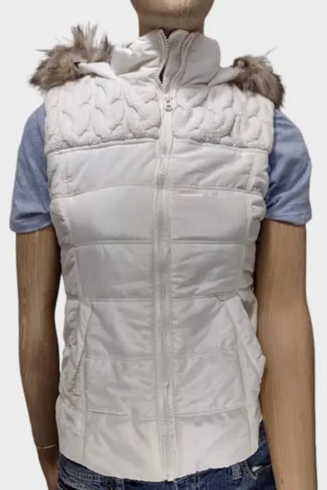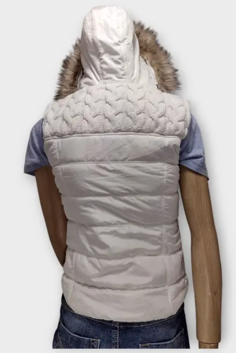 Aeropostale Chaleco Blanco Perla Dama SChaleco Aeropostale con gorroMarca: AeropostaleOrigen: ChinaMaterial: PoliesterRelleno: 60% Algodón 40% AcrylicTalla: S - CHEstilo: CasualPatrón AcolchadoColor: Blanco PerlaCierre: CremalleraLargo: 55-57 cmPecho: 42-44 cmHombro: 36-38 cmManga: Sin MangasRopa de USO en excelente estado
