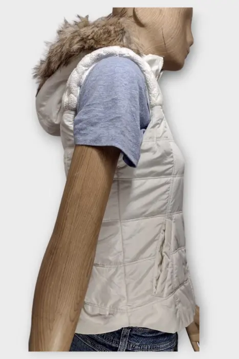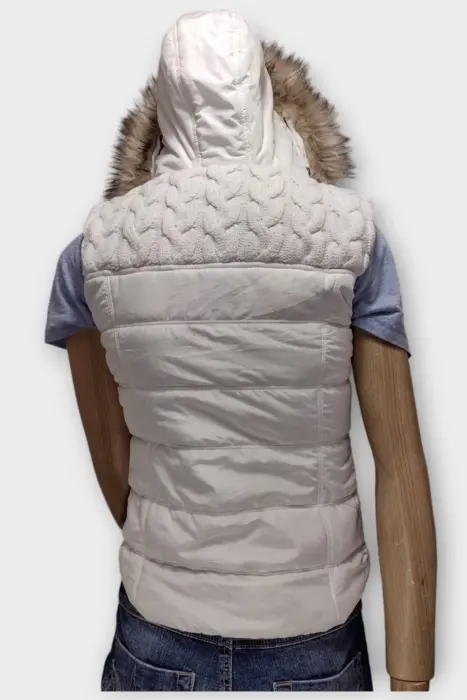 Aeropostale Chaleco Blanco Perla Dama SChaleco Aeropostale con gorroMarca: AeropostaleOrigen: ChinaMaterial: PoliesterRelleno: 60% Algodón 40% AcrylicTalla: S - CHEstilo: CasualPatrón AcolchadoColor: Blanco PerlaCierre: CremalleraLargo: 55-57 cmPecho: 42-44 cmHombro: 36-38 cmManga: Sin MangasRopa de USO en excelente estado