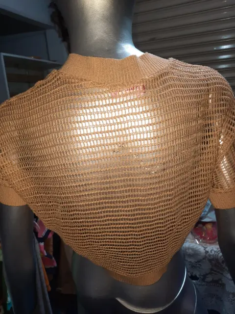 Bonito chaleco tejido color cafe claro. Bonito chaleco tejido color cafe , tipo top sin detalle , marca Shasa