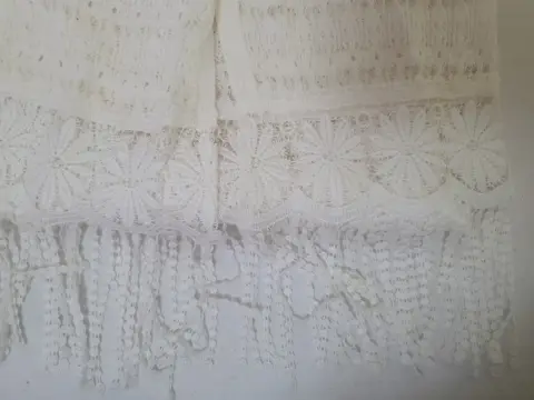 Chalequito largo estilo tejido blanco, esta nuevo, sin etiqueta el tejido no tienen ningún detalle