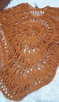 Capa café. Linda capa color café, se encuentra muy bien de color,lindo diseño tejido de tiras como se muestra en la imagen
