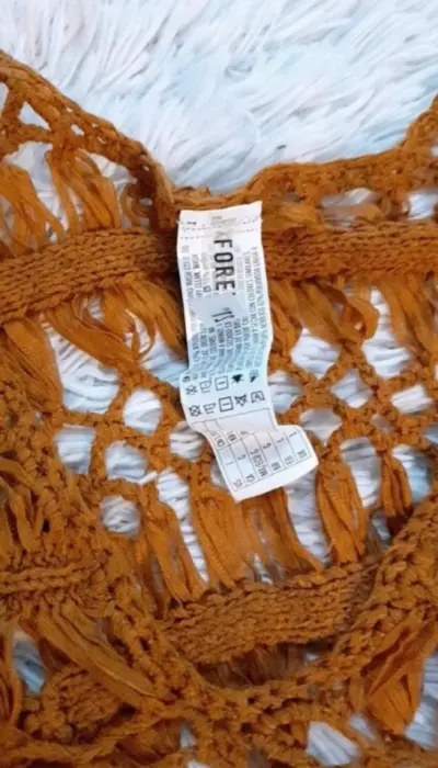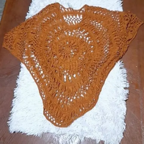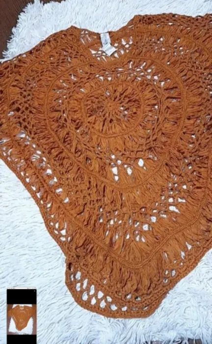 Linda capa color café, se encuentra muy bien de color,lindo diseño tejido de tiras como se muestra en la imagen