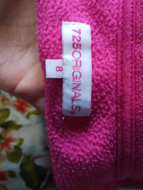 Color rosa con sierre un poco de cuello tiene bolsas ,es abrigado talla 8 de niña