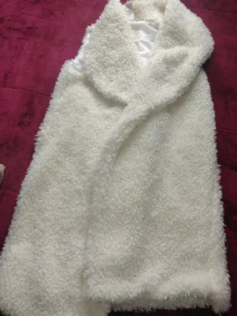 Chaleco aborregado color perla, marca Roxy, largo hasta la pantorrilla talla M nuevo sin etiqueta perfecto estado
