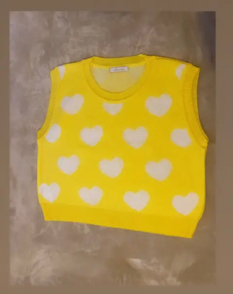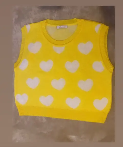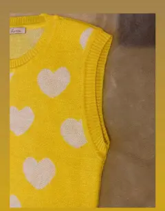 Chaleco amarillo dama. Chaleco dama con corazones es unitalla no tiene ningún detalle esta nuevo y en perfectas condiciones $ 300