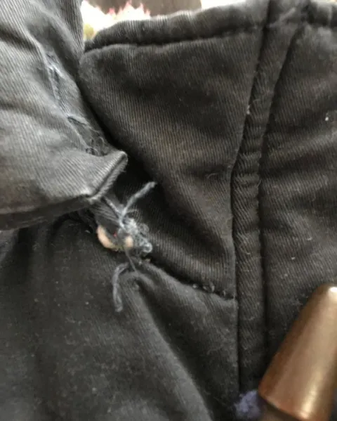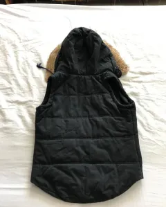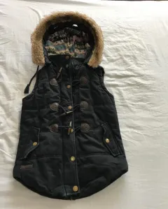 Chaleco azul marino. Es un chaleco color azul marino con peluche en el gorro, ese peluche se desmonta, es talla ECH, tiene detalles de uso como se muestran en la foto.