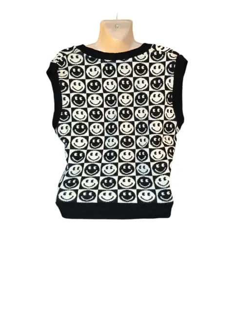 Lindo chaleco de tejido de punto color blanco 🤍 con negro.Estira llega arriba de la cintura medidas axila axila 54 cmLargo 50 cmEn perfecto estado sin ningún detalle