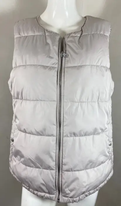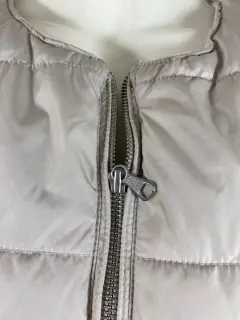 Chaleco capitoneado con forro muy calientito en color hueso, con broches en las bolsas y cierre al frente