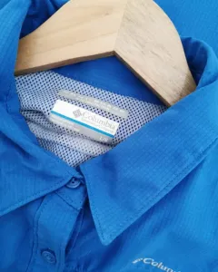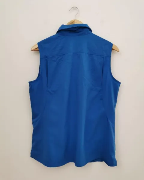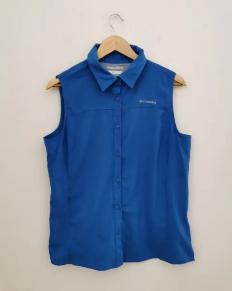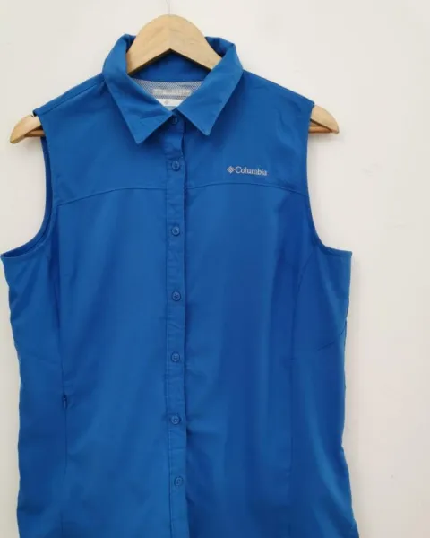 Chaleco marca COLUMBIA, talla L, color azul, tela ligera super fresco. Cuenta con la tecnología OMNI-SHADE como protector solar contra rayos UV. Nuevo sin etiqueta