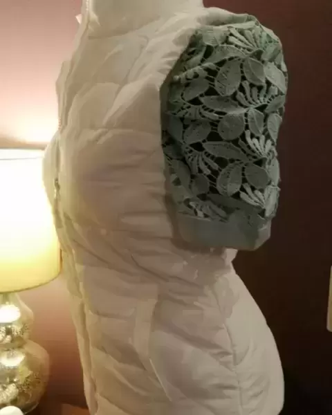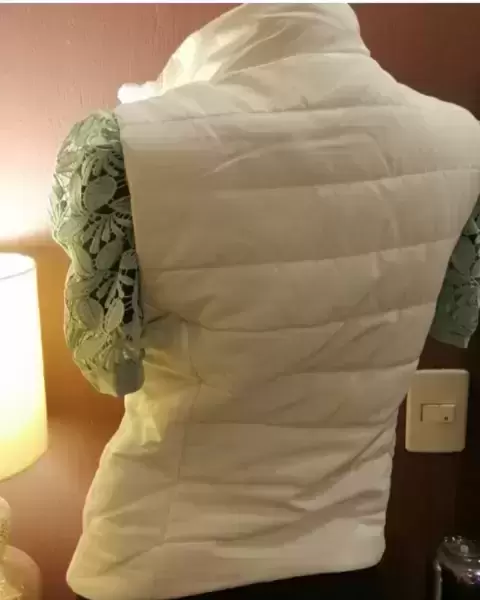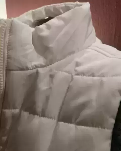 Marca: Aeropostale*Talla: Chico*Color: Blanco* Cierre frontal en excelente estado*Bolsas laterales ocultas*Largo total: 56 cms.* Ancho de axila a axila: 45 cms* Diseño acolchado en forma horizontal* Forro interno* Composición de la tela: 100 % poliéster*No incluye blusa* Se entrega sanitizado