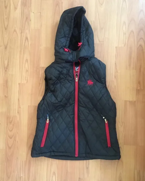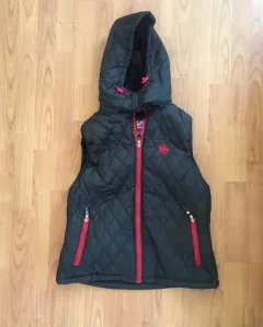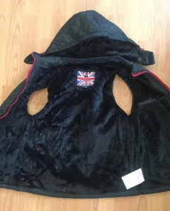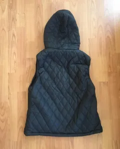Chaleco con gorro desmontable y afelpado en el interior Medidas: Axila a axila 48 cm hombro 38 cm, largo 69Dice talla Xl pero queda a m o L