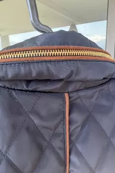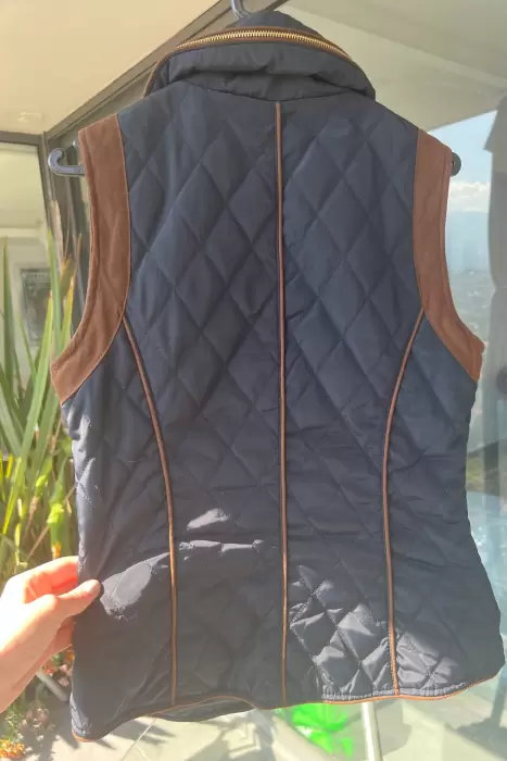 Chaleco con rombos bordados por frente y atras. Insertos de gamuza cafe. Se ve muy elegante