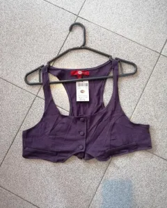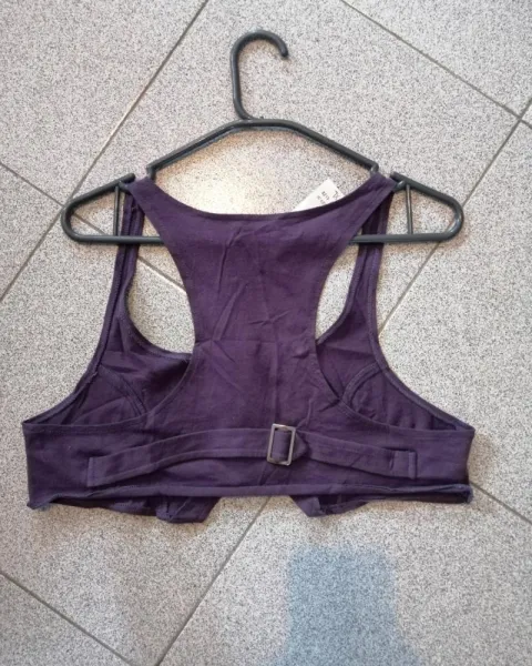 Chaleco corto morado. Chaleco corto color morado, talla EG. Tiene tres botones en frente se puede desabrochar, detalle de cinta ajustable atrás.