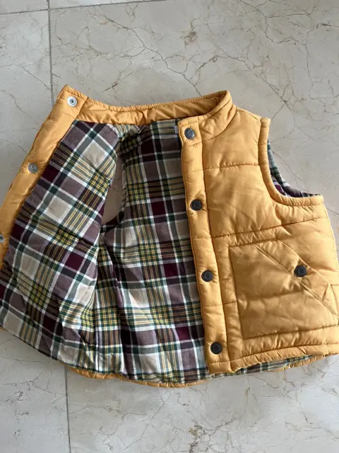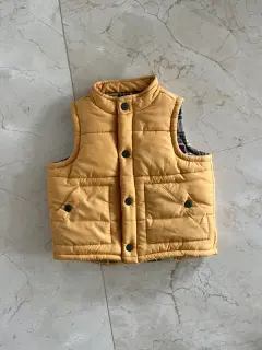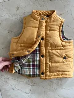 Hermoso y calientito chaleco de Niño color mostaza talla 3 a 6 meses Se puso una sola vez Esta nuevo