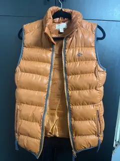 Chaleco calientito de cierre para equitación, color naranja bajito con bolsas a los lados con cierre. Talla S que queda a M