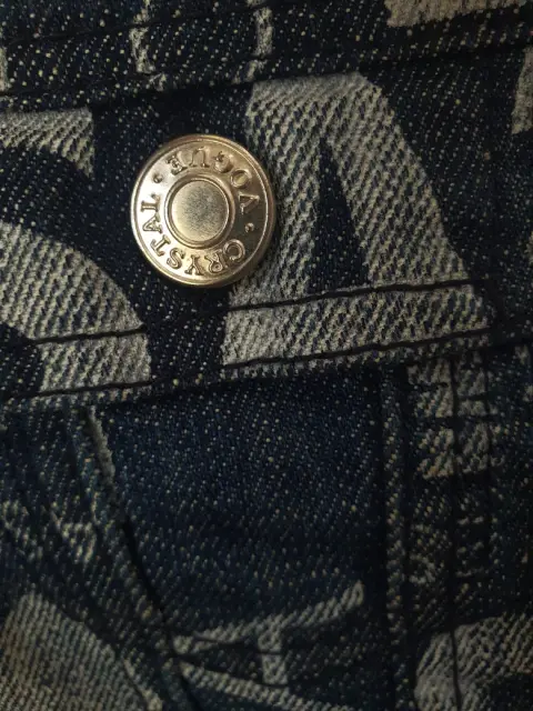 Chaleco de mezclilla. Chaleco de mezclilla talla 4. Marca Crystal Vogue. Estampado de letras en blanco.